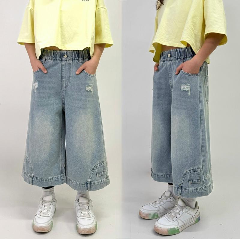 Джинсовые капри незаменимый элемент гардероба тканина джинс в поясе под резинку есть карманы Производитель фабричный Китай Супер качество! рост/размер/длина/шак/пот/поб 140/130/63/35/26/45 146/140/65/36/27/46 152/150/68/38/28/47 і