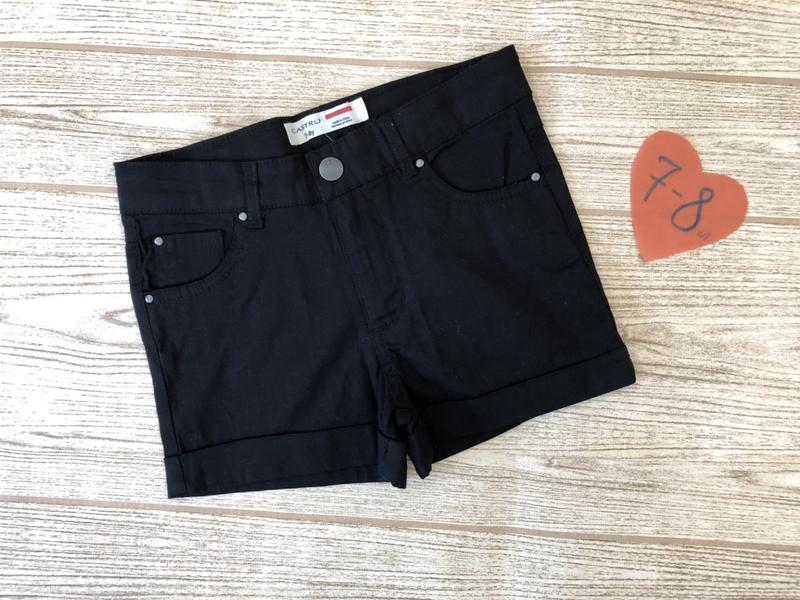 Короткие черные Шортики на девочку 7-8 лет. Ткань тянется, приятная на ощупь и легкая. Идеально на весну и на лето. У нас Вы найдете новые фирменные вещи по очень доступной цене!