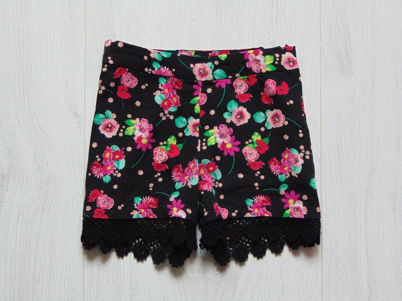 Яркие лёгкие шорты для девочки. Внизу декорированы кружевом. Сбоку на молнии. New look. Размер 9 лет. Состояние: новой вещи. Состав: 100% вискоза. Замеры: длина 24-27 см, шаговый шов 4-7 см, талия 29Х2 см, тянется до 32Х2 см, бёдра 38Х2 см, ширина штанины внизу 25 см, глубина посадки 23 см. Материал немного тянется. Цена 150 грн.
