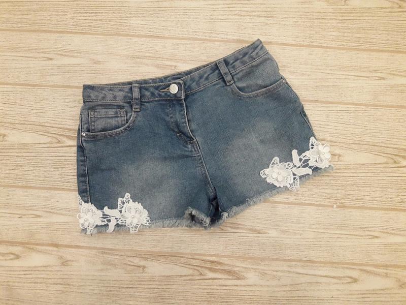 Стильные шорты на девочку 9-10 лет. По бокам цветы с кружевом, внутри в поясе утяжка. Смотрятся очень стильно. Смотрите другие мои объявления, много красивой фирменной одежды в наличии!