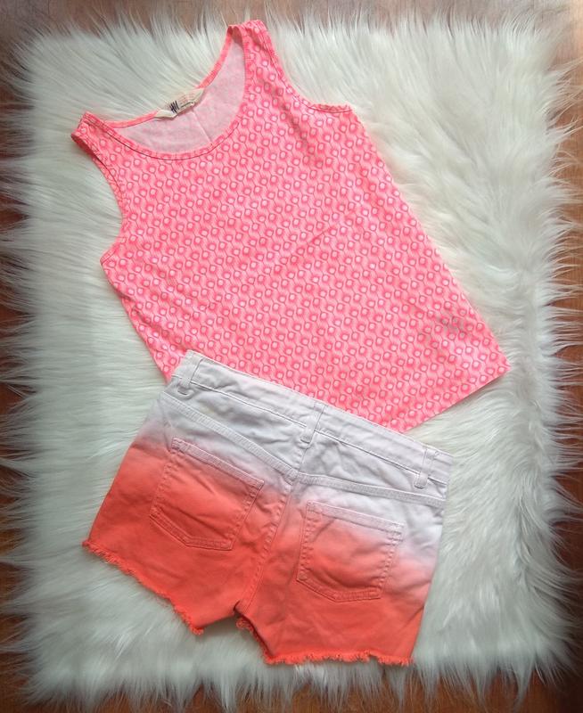 Майка H&M 146-152 см есть маленькая дырочка на спинке - последнее фото Шорты H&M 152 см, утеряна пуговица, есть пятнышко сзади - фото