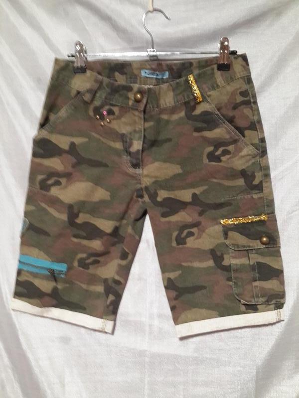 Шорты в стиле милитари для девочки. Замеры: длина - 49см, ПОТ - 36см, ПОБ - 46см, глубина - 21/32см, ширина штанины снизу - 21см