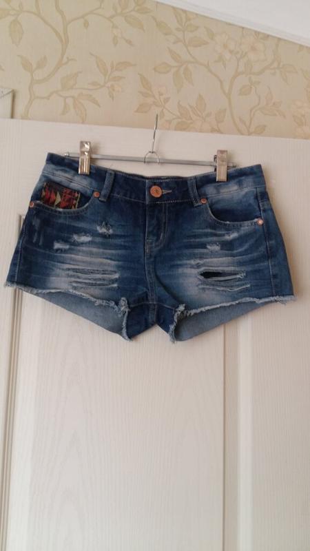 Необычные, модные шорты на девочку 11 лет, с потертостями, дранками, прорезями. На карманах вставки из гобеленовой ткани. Не тянутся. Замеры: Длина 22 см ПОТ 37 см ПОБ 43 см
