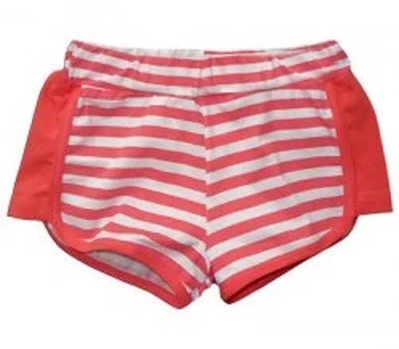 Летние спортивные шорты для девочки с вставками по бокам, пояс на широкой резинке. Не заменимая вещь в летнем гардеробе юной модницы! Цвет: Коралловый в полоску; Полотно: Стрейч-кулир; Состав: 95% хлопок, 5% эластан;