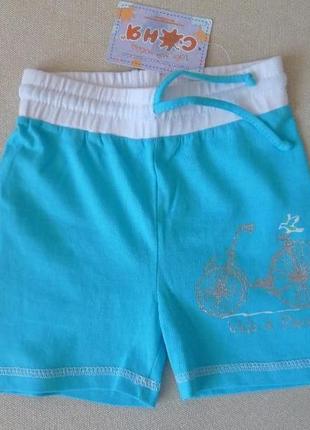 Новые шортики ТМ Соня Украина, на рост 80-92см. возраст 1-2 года. Ткань - хлопок, цвет - ярко голубой