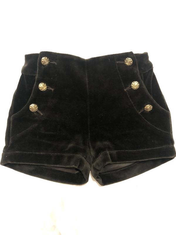 Бархатные шорты , размер 104. В носке были один раз- переросли . По бокам резиночка для регулировки пояса .
