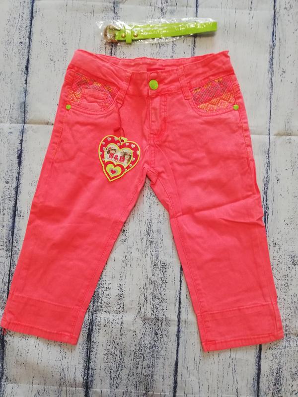 Бриджи коттоновые для девочек от фирмы S&D. Верх на пуговице и молнии. В комплекте с ремешком. Состав: cotton 95%, lycra 5%. Размер 8 Длина 49 пот 28 поб 35