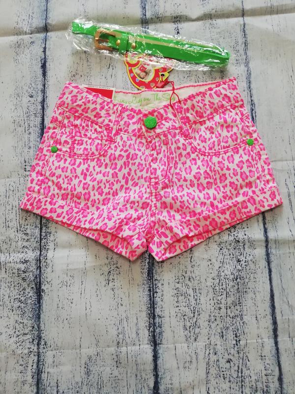 Шорты коттоновые для девочек от фирмы S&D. Верх на пуговице и молнии. В комплекте с ремешком. Состав: cotton 95%, lycra 5%. Размер 4 Маломерят Длина 19 пот 24 поб 32