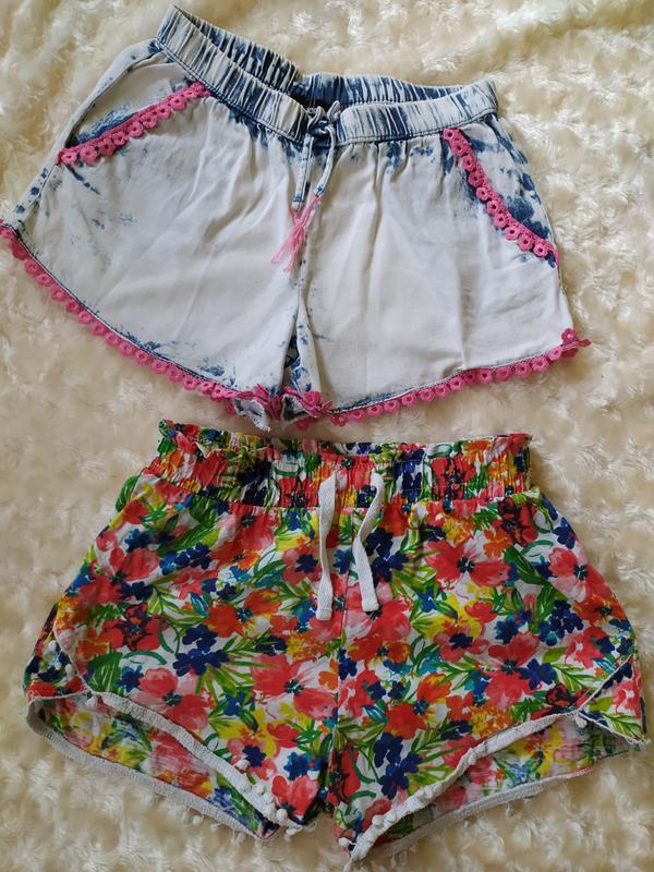 Лёгкие классные шорты . цена за одни. Состояние отличное дефектов нет. Легенькие, цветные лёгкий Котон, светлые лёгкий джынс. Светлые дл 26, бедра 36, в резинке 28 + тянется, Яркие в цветочкидл 27 , резинка 28+ тянется очень хорошо, бедра 35. В моих объявлениях есть много вещей для девочек.
