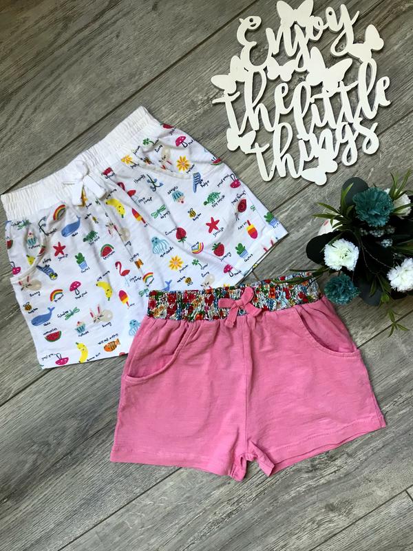 шорти фірми НЕКСТ по бірочці на 1.5-2 рочки) більшомірять будуть краще на 2-4 рочки) 1)довж.-21см.,пояс-20см. 2)довж.-22.5см.,пояс-21см. стан відмінний) ціна набору-145 грн