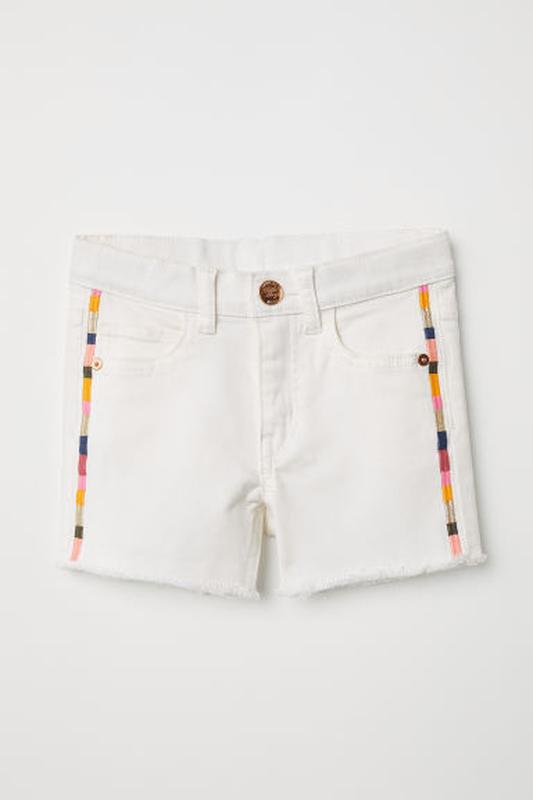 Шорты с пятью карманами из эластичного денима. В талии регулируемая резинка, застежка на молнию и пуговицу. Необработанный нижний край с бахромой и цветная полоска сбоку очень стильно смотрятся. В наличии размеры 92, 116 см
