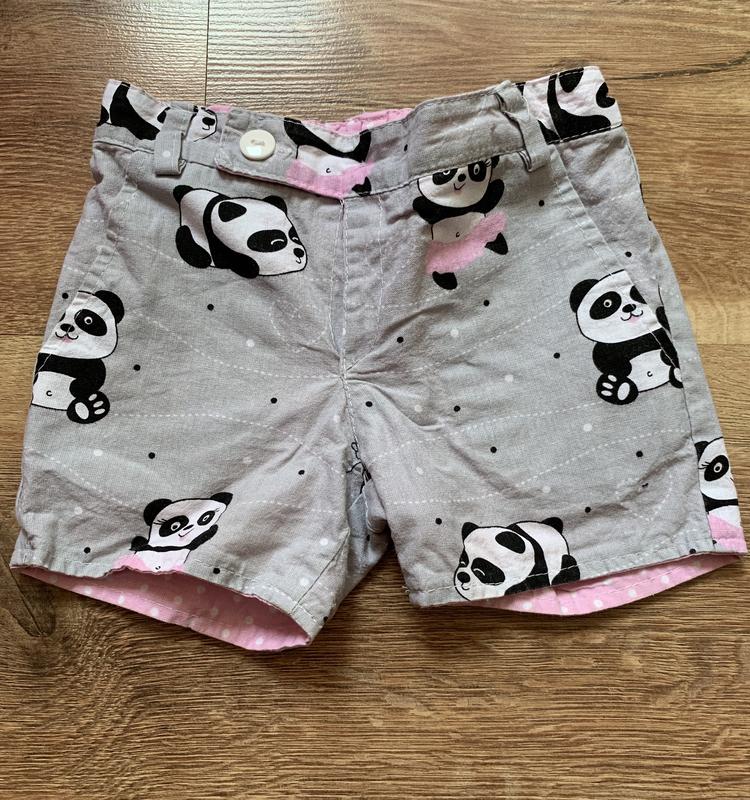 Шорты на две стороны: з пандами и розовые в горошек. Состояние отличное, дефектов нет