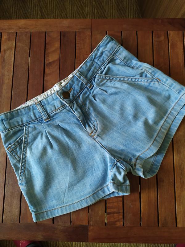 Шорти джинсові для дівчинки.Джинс середньої щільності.Попереду защипи,відмінно сідають.Були найулюбленіші. ВІД - 33см,всередині є стяжка.Довжина-22см.