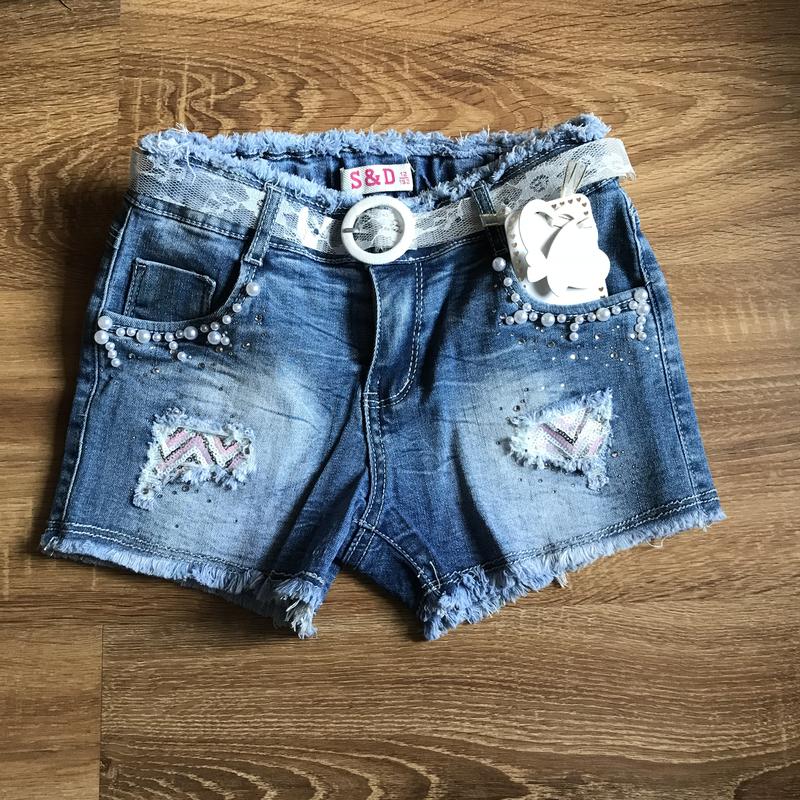 Джинсові шорти на дівчаток Перлинки припаєні Хорошої якості На поясі є утяжка Розмір 18 Орієнтуйтеся на заміри Зріст/довжина/талія 18/27/33-/+(є у тяжка)