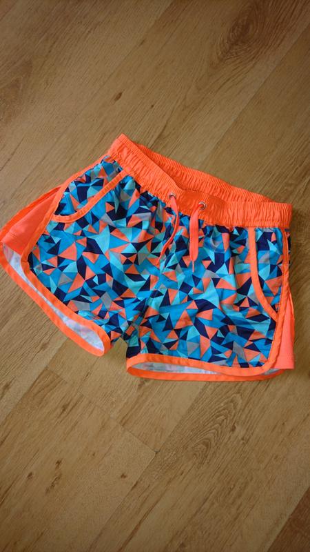 Спортивные шорты на девочку 6-8 лет Состояние очень хорошее ПОТ 30 см ПОБ 43 см Длина 25 см Есть маленькое пятнышко сзади (указала на фото), в носке не видно за счёт яркого принта.