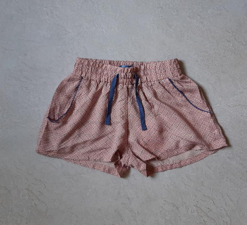 Производитель: Alive Состав : 100% вискоза Цвет: розовый Размер : 116 Легкий материал , шорты с карманами . Пояс - широкая , эластичная резинка . Полуобхват пояса 24,5 см тянется до 37 см поб 38 см длина 24 см