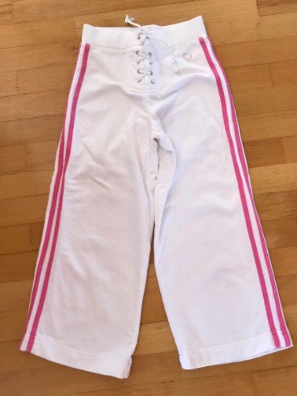 Класні білі придбані в Іспанії, одягнули пару раз і виросли з них, розмір 9 років вказано. Довжина по зовнішньому шву- 70см, пояс- 28см( тягнеться до 38см), передня посадка-24см, задня- 32см, штанка внизу-22см.