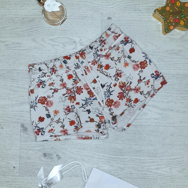 Хлопковые трикотажные шорты ткань двунить на девочку, цветочный принт