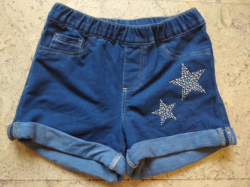 Шорты из высококачественной эластичной ткани Knit Denim. Украшены стразами.Спереди маленький боковой карман, сзади 2 накладных кармана. Состав ткани: 77% Хлопок,17% Полиэстер,6% Эластан. Размерный ряд: 5-6 лет(116 см) Пот-23 см,высота-22 см, поб-31 см 6-7 лет(122 см) Высота-22 см,пот-24 см, поб-33 см 7-8 лет(128 см) Высота-24 см,пот-26 см, поб-35 см 8-9 лет(134 см) Высота-26 см,пот-28 см, поб-37 см Цена 5-6 лет-280 грн 6-10 лет-300 грн Артикул-244305