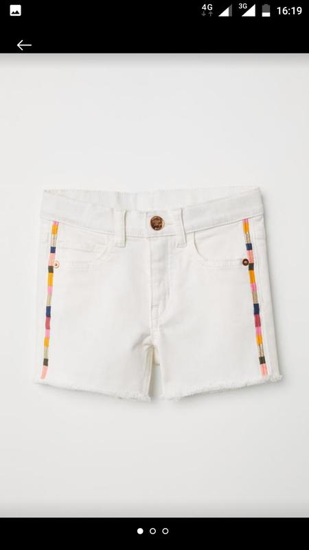 Новые стильные белоснежные шорты для девочки. Талия внутри регулируется. H&M. Размеры: 4-5 лет; 5-6 лет. Состояние: новые, с биркой. Состав: 98% хлопок, 2% эластан. Замеры 4-5 лет: длина 23 см, шаговый шов 7 см, талия 25.5Х2 см, есть утяжка, бёдра 28Х2 см, ширина штанины внизу 17 см, глубина посадки 19-22 см. Материал тянется. Замеры 5-6 лет: длина 24 см, шаговый шов 7 см, талия 27Х2 см, тянется до 31Х2 см, есть утяжка, бёдра 29.5Х2 см, ширина штанины внизу 17.5 см, глубина посадки 20-24 см. Материал тянется. Цена 200 грн.