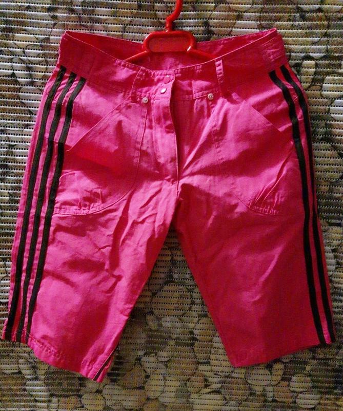 Розовые шорты от ADIDAS на девочку 12 лет. Шорты застегиваются на молнию и на 2 кнопки. Есть шлевки под пояс. Сзади на поясе логотип ADIDAS, и 2 кармана которые застегиваются на пуговицу.