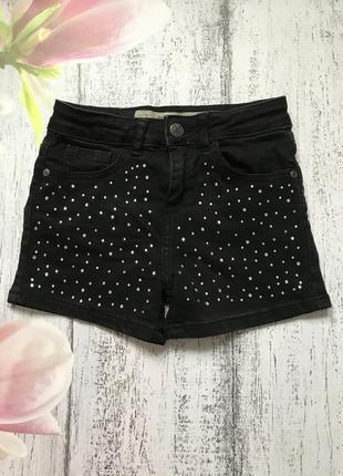 Крутые джинсовые шорты в стразах DenimCo 7-8лет, тянется, в поясе утяжка, замеры на фото
