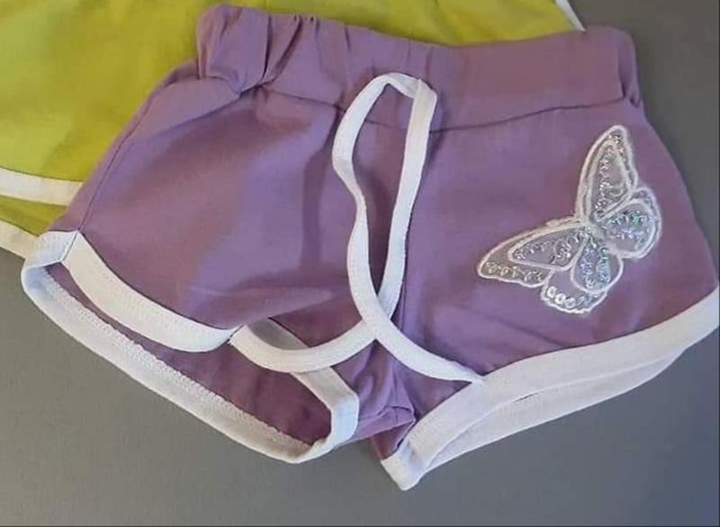 Яркие шортики для девочек 🍬🍬🍬🍬🍬🍭🍭🍭🍭🍭🍭 🍇 Шорты для девочки фиолетовые с апликацией бабочка .Состав :100 % хлопок.Размер : 86 см , 92 см. 98 см