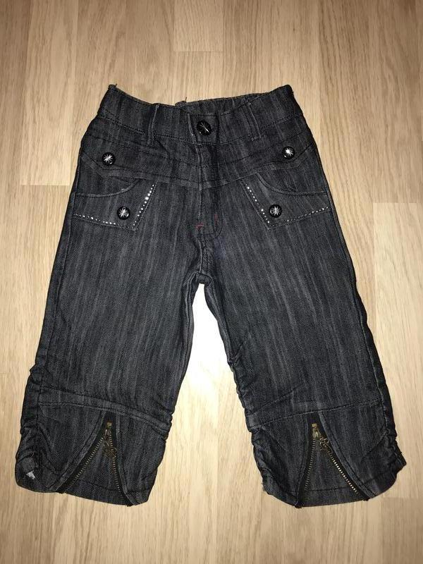 Бриджи джинсовые серые в идеальном состоянии. Пояс на резинке, не регулируется. Размер 7-9 лет Замеры: Пояс - 54 см Длина боковой шов- 49 см Длина шаговый шов - 26 см Низ штанина обхват - 34 см (регулируется змейкой)