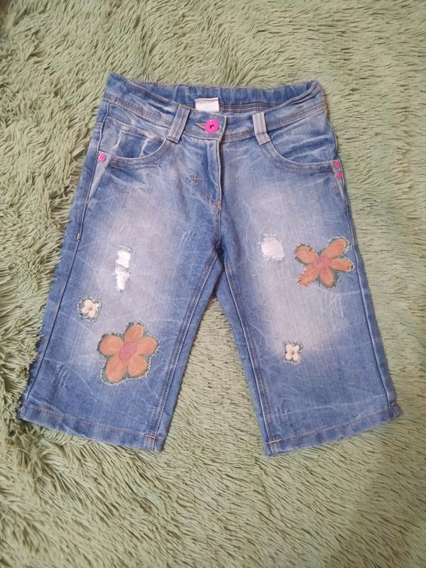 Джинсовые удлиненные шорты, украшены нашитыми цветками из ткани. Состояние новых