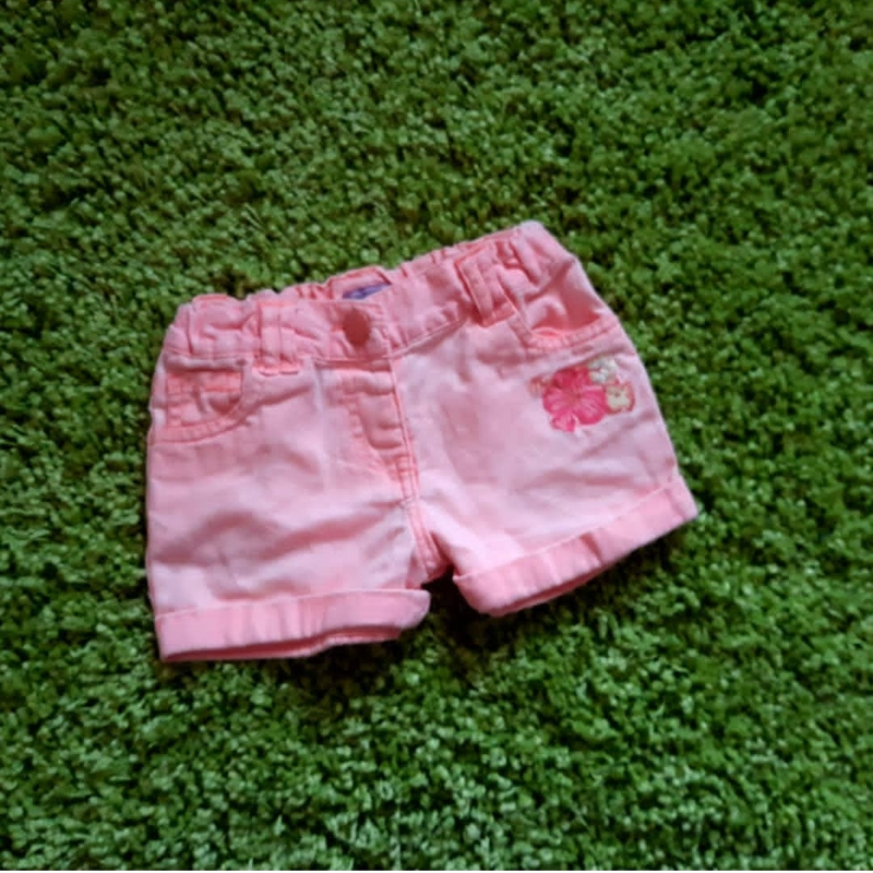 Шикарные яркие неоновые шорты.Состояние новых. Фирма F&F Размер указан 18-24 месяца, на рост 92 см,подойдут и на 98 см. Замеры Длина 21 Шаг Ширина в бедрах 31 Пояс регулируется,есть утяжка. Отлично тянутся. Состав 100% коттон.