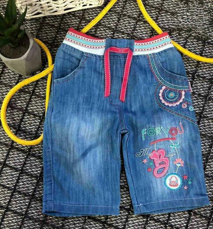 качественные джинсовые бриджи. Турция резинка немного тянется. размеры: 4 года (104 см) длина 36,5 резинка 24,5 6 лет(116 см) длина 44 резинка 27 7 лет(122см) длина 46,5 резинка 28-29