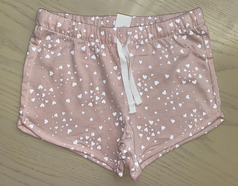 Трикотажные шортики H&M (Германия) Отличное качество по отличной цене! Шорты из мягкого хлопкового трикотажа с резинкой и кулиской на талии. Скругленный низ. Цвет: розовый с принтом. Состав: 100% хлопок. Размеры в наличии: 92, 104. Цена окончательная! 92: ПОТ 25 ПОБ 31,5 Длина по боковому шву 18-18,5