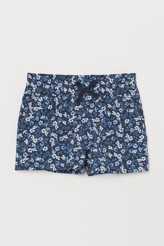 Трикотажные шортики с принтом H&M Отличное качество по отличной цене! Шорты из мягкого трикотажа с принтом. Обтянутая резинка и декоративный бантик на талии. Маленькая оборка сверху. Боковые карманы. Цвет: темно-синий/цветы. Состав: 100% хлопок. Размеры в наличии: 122/128. Цена окончательная!