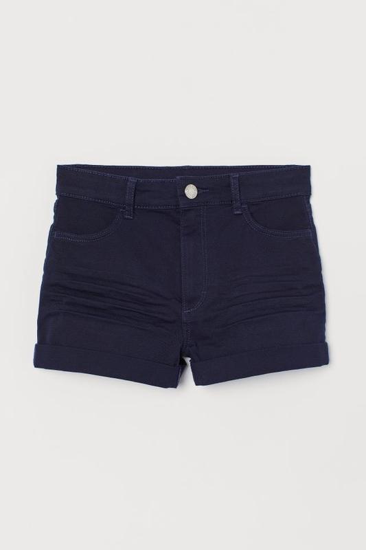 Отличные шортики из твила H&M (Германия) Отличное качество по отличной цене! Шорты из эластичного хлопкового твила. Регулируемая резинка на талии (кроме размера 170), а также застежка на молнию. Карманы спереди и сзади. Снизу пришитые отвороты. Состав: Хлопок 98%, Эластан 2% Цвет: темно-синий. Размеры в наличии: 134, 152, 170. Цена окончательная! 134: ПОТ 29,2 ПОБ 35,7 Длина по боковому шву 23,5