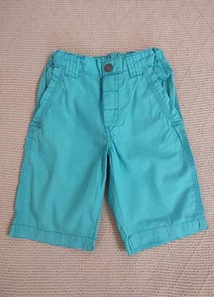 Шорты H&M на девочку 4-5 лет Возраст: 4-5 лет; рост: 110 см Цвет - бирюзовый. Состав: 100% хлопок. Произведено в: Бангладеш. В области талии - резинка-утяжка. Шорты в хорошем состоянии. ЗАМЕРЫ: ПОТ - 25,5 см Длина по внутреннему шву - 19,5 см Длина по внешнему шву - 38,5 см