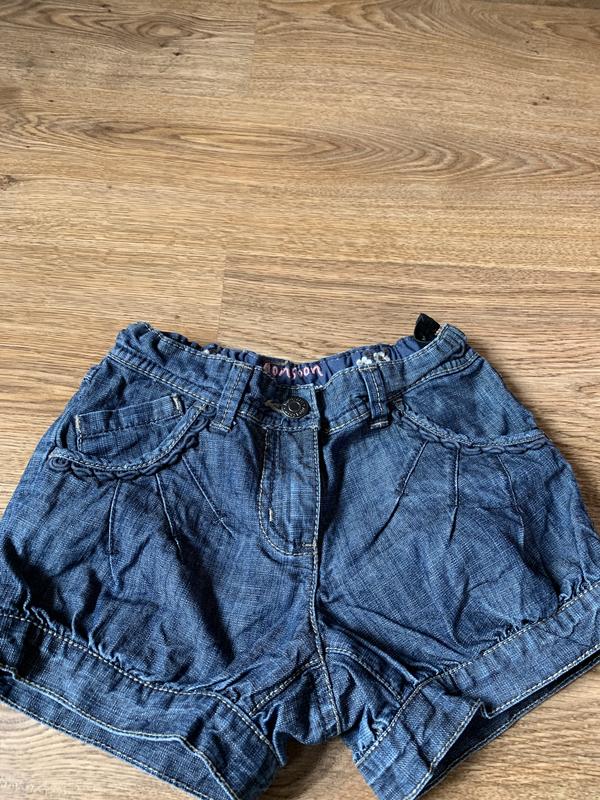 Джинсовые шорты, на 5-6 лет, п/о талии 29 см ( есть втяжки) длина по боковому шву 22 см