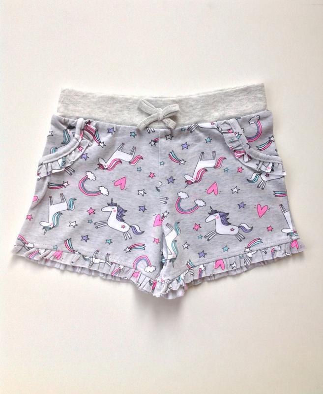 Primark оригинал Англия Шорты с принтом "Единороги" В поясе эластичная резинка Шнурок и карманы - обманки Размеры: 98 см (2-3 года), 104 см (3-4 года), 110 см (4-5 лет) 100% хлопок В продаже есть маечка к комплекту