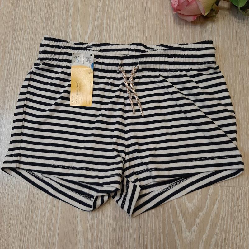 Шорти в чорно- білу полоску, в поясі на резинку та зав'язки ✔ Вік 6-8 років, зріст 122-128 см,п/пояс 28 см, д/зовнішній шов 22см 💬100% бавовна 🕶 Young Style