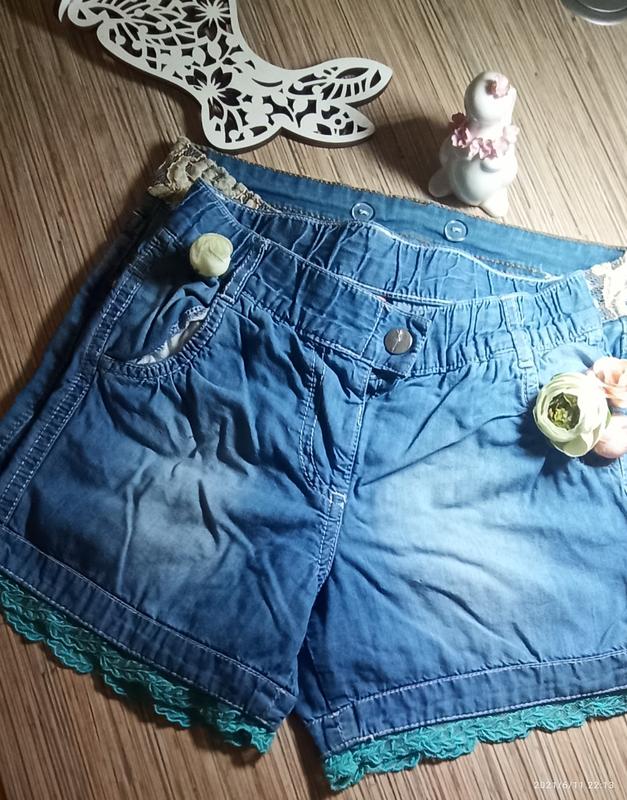 шортики для леді, що має зріст 134/140. легенький джинс. стан дуже гарний, крім двох зацепок, на останнюму фото видно😉