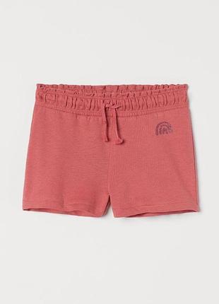 Классные шортики H&M Отличное качество по отличной цене! Шорты из легкого футера с закрытой резинкой и кулиской на талии. Хлопок в составе шортов - органический. Состав: Хлопок 100%. Цвет: приглушенный розовый/радуга. Размеры в наличии: 122, 128, 134, 140. Цена окончательная.