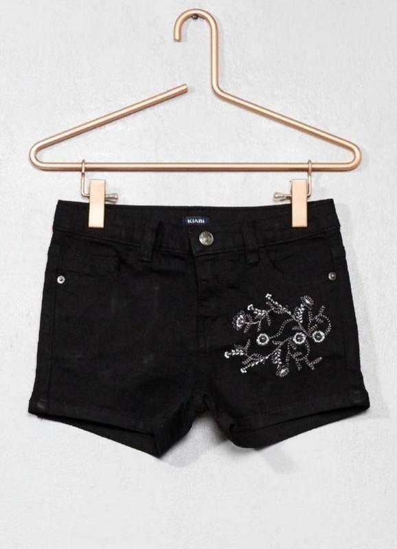 Джинсові шорти фірми kiabi р. 146/152 Джинс стрейч - тягнеться ! Попереду вишивка гладдю + 3 намистинки. Заміри : ПОТ -33см, всередині гумка утяжка ПОБІДИ - 41см, Довжина по боковому шву - 24 см При покупці з футболкою - знижка !