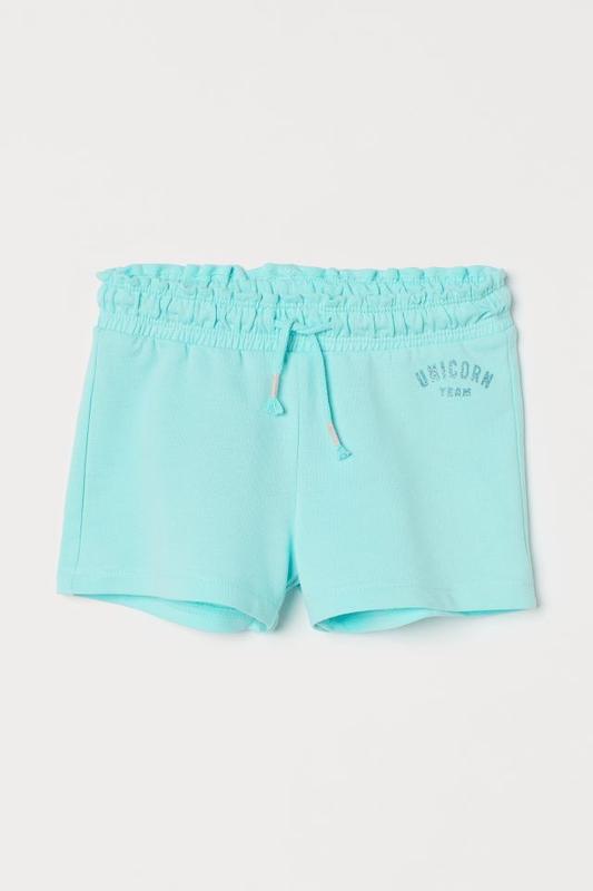 Классные яркие шортики H&M Отличное качество по отличной цене! Шорты из легкого футера с закрытой резинкой и кулиской на талии. Хлопок в составе шортов - органический. Состав: Хлопок 100%. Цвет: бирюзовый/unicorn. Размеры в наличии: 110, 116, 122, 128, 140. Цена окончательная!
