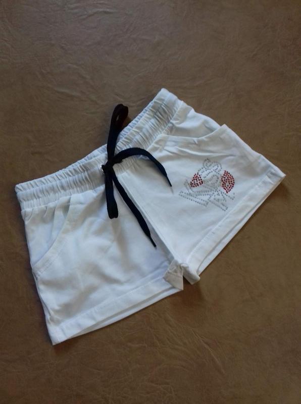 Стильные шорты со стразами, кармашки Пояс регулируется шнурком Производство Турция, хлопок, Банари Размеры: 128см - р. 116: НЕМАЛИТ - р. 122: НЕМАЛИТ - р. 128: длина по боковому шву 20см, пояс ПО 26см (резинка + шнурок), бедра 35см 🚙 Доставка: Нова пошта, Укрпошта,
