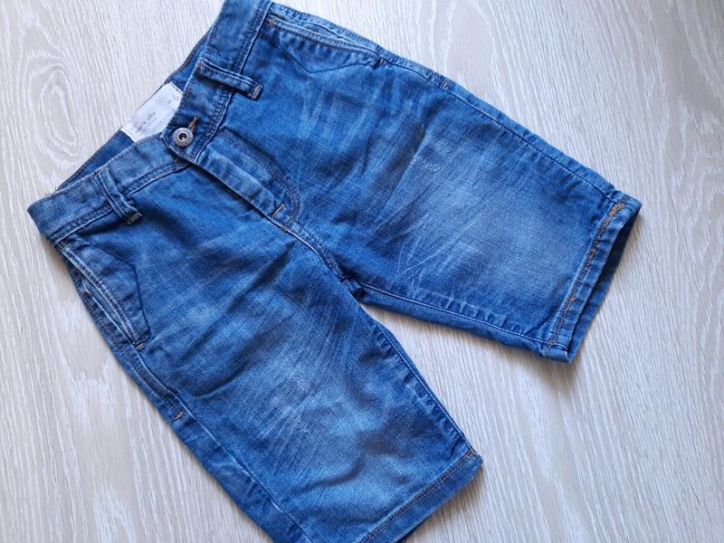 Джинсовые шорты Premium Denim на 5-6 лет с потёртостями со стильными кармашками замеры пояс 26 длина 39 шаг 20