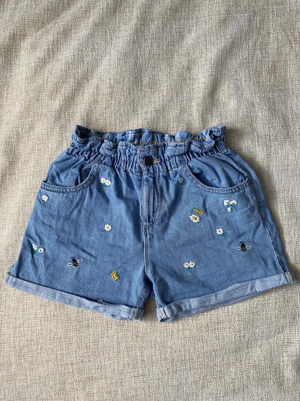 Шорти джинсові із вишитим принтом ромашки та бджілок , розмір 152 см (11-11років)