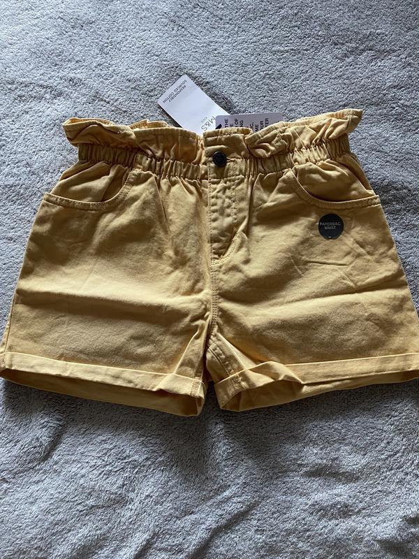 Желтые шорты M&S. Новые. Замеры: талия 32-35см резинка, бедра 43м длина 30см.