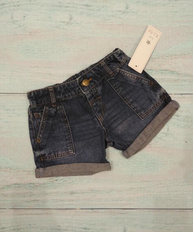 Шортики джинсовые F&F на 4-5 лет На поясе регулируемые ( с внутренней стороны резиночка на пуговичке) , посадка спереди 17,5 см. сзади 21 см ПОТ 26 см (можно сделать больше/меньше.+-2-3 см) Длина по наружной стороне (с отворотами) 21 см