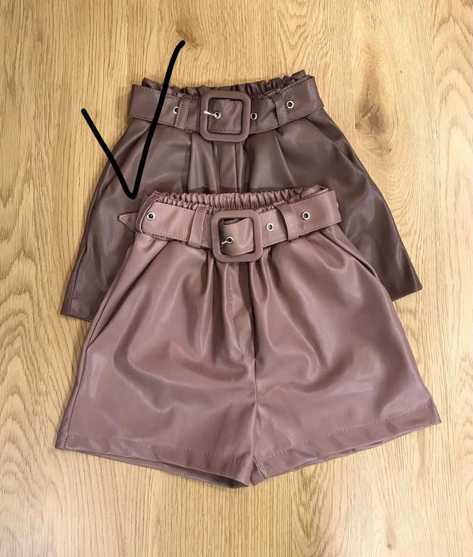 Стильні шорти для модняшок♥️ тканина еко-шкіра, в поясі резинка , ремінець в комплекті, є кишені Колір МОККО Заміри: довжина/пояс 128-28/22 134-29/23 140-30/24 146-31/25 152-32/26