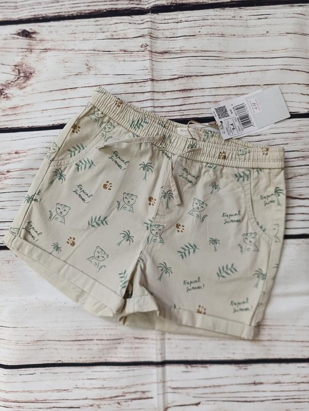 Щільні шорти від Mango (Іспанія), з офіційного сайту. Нові, з етикеткою. Шнурок робочий, спереду кишені. Колір хакі. Розмір 3-4 р. (104 см) довжина з завернутими низом (як на фото) 23 см, резинка 25 см