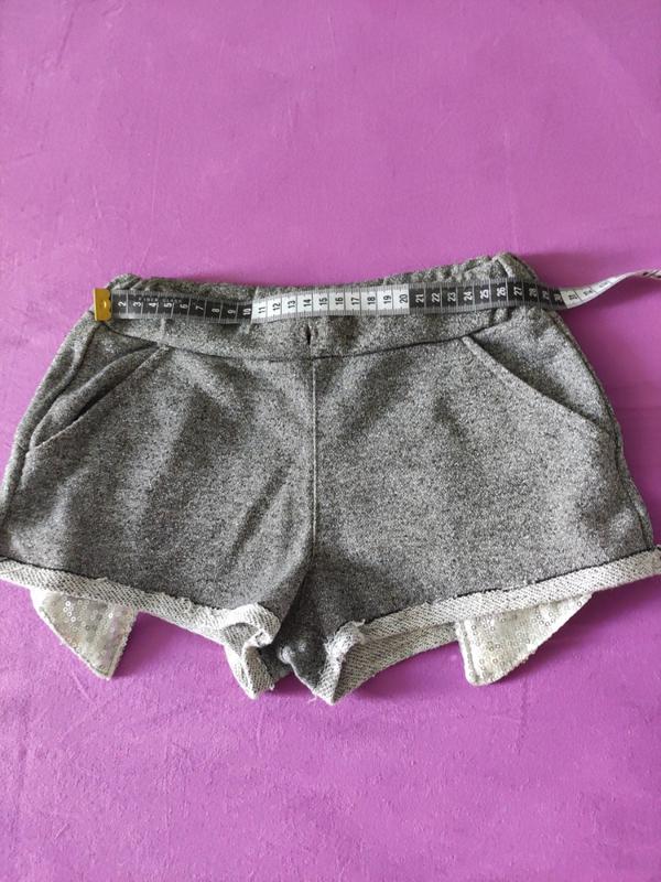 моднячие шорты для девочки 7-8 лет с люрексной блестящей ниткой и паетками. состояние идеальное. носили один сезон. пересылаю. замеры на фото